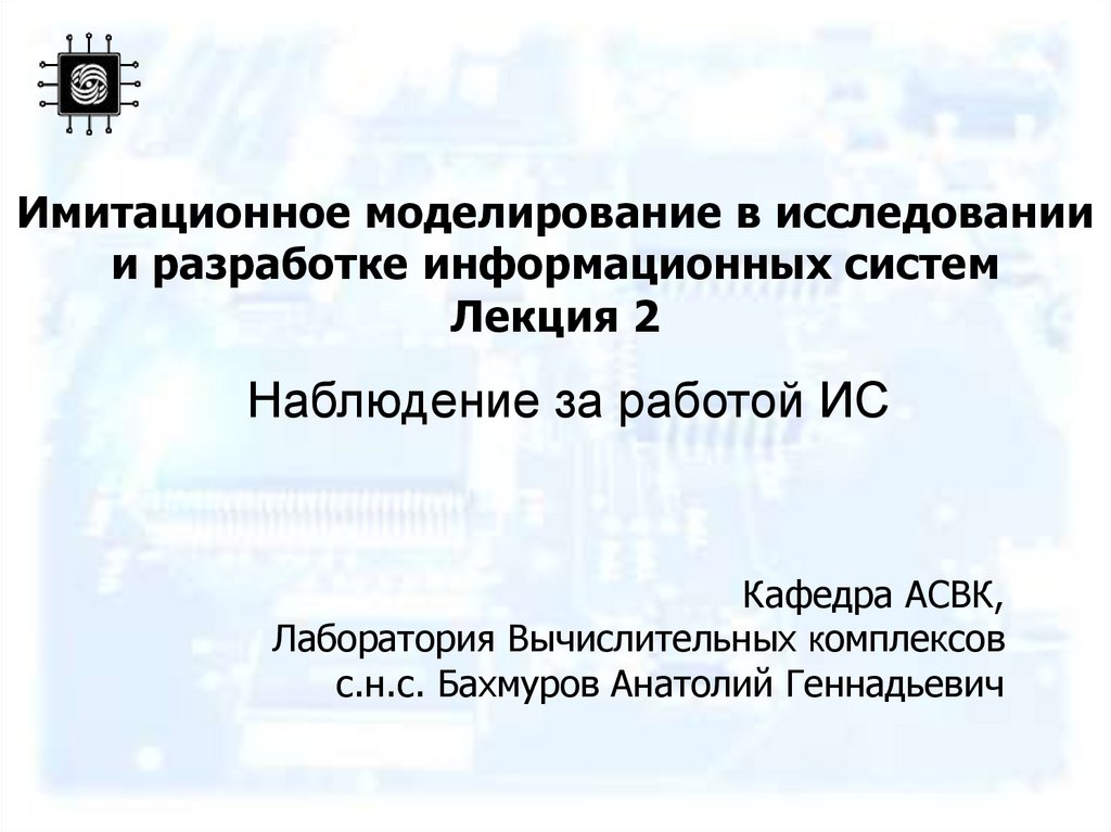 Имитационное моделирование в исследовании и разработке информационных систем. Лекция 2. Наблюдение за работой ИС