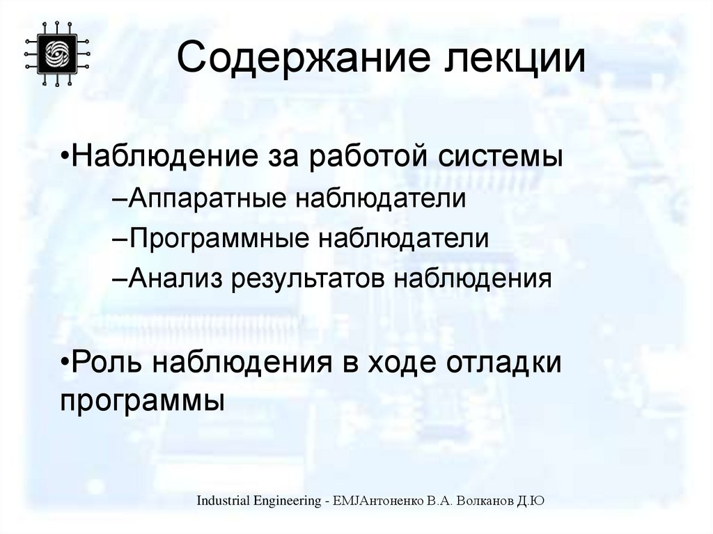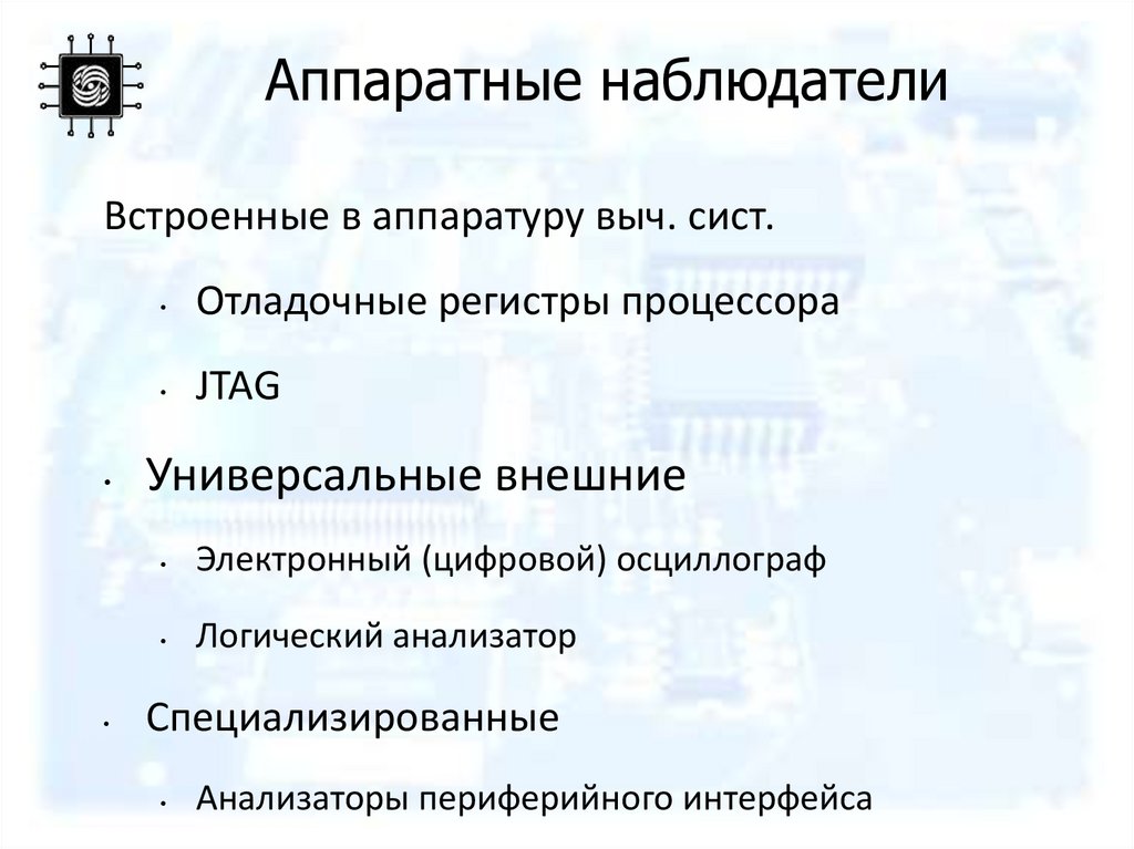 Аппаратные наблюдателиВстроенные в аппаратуру выч. сист.