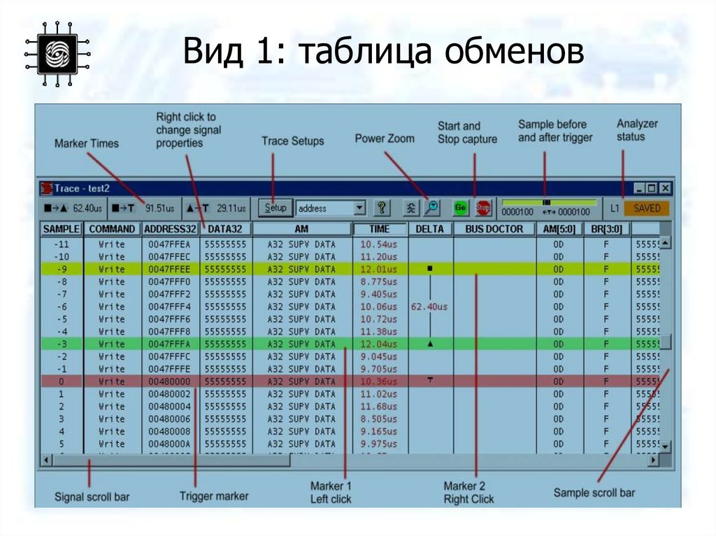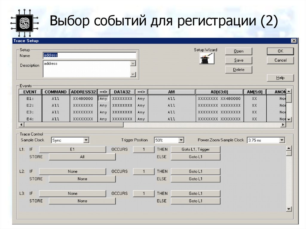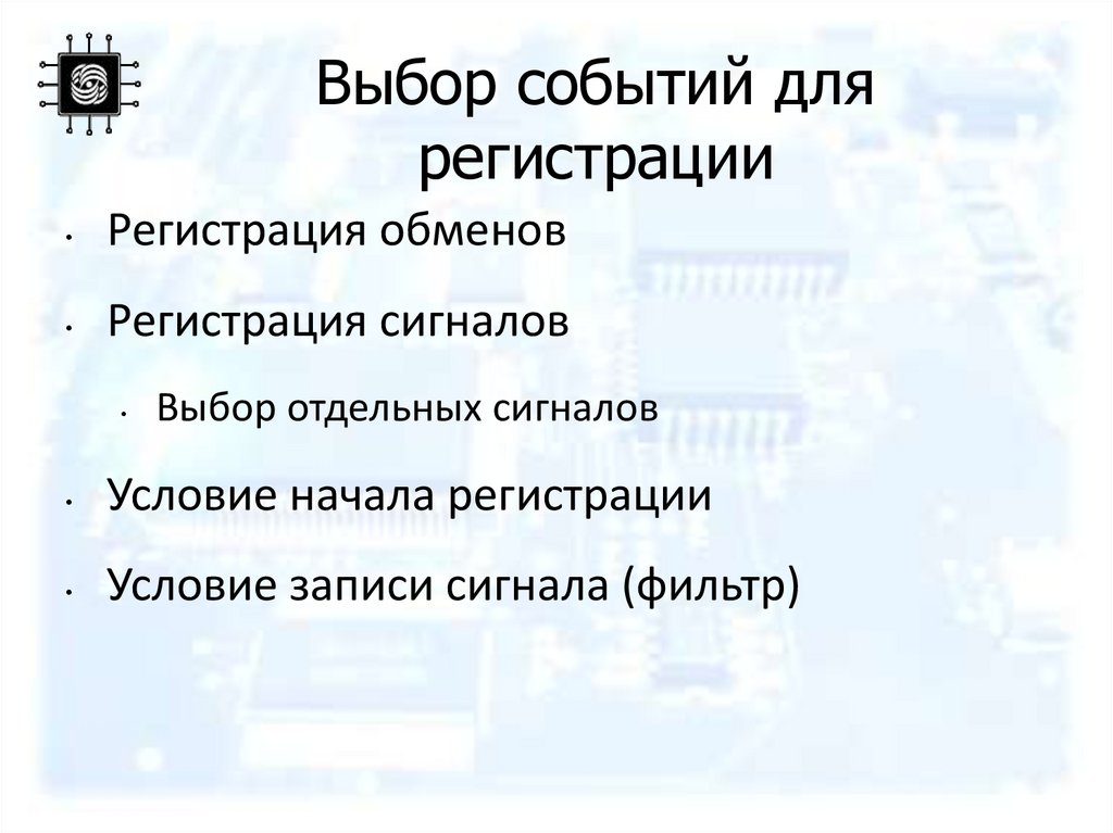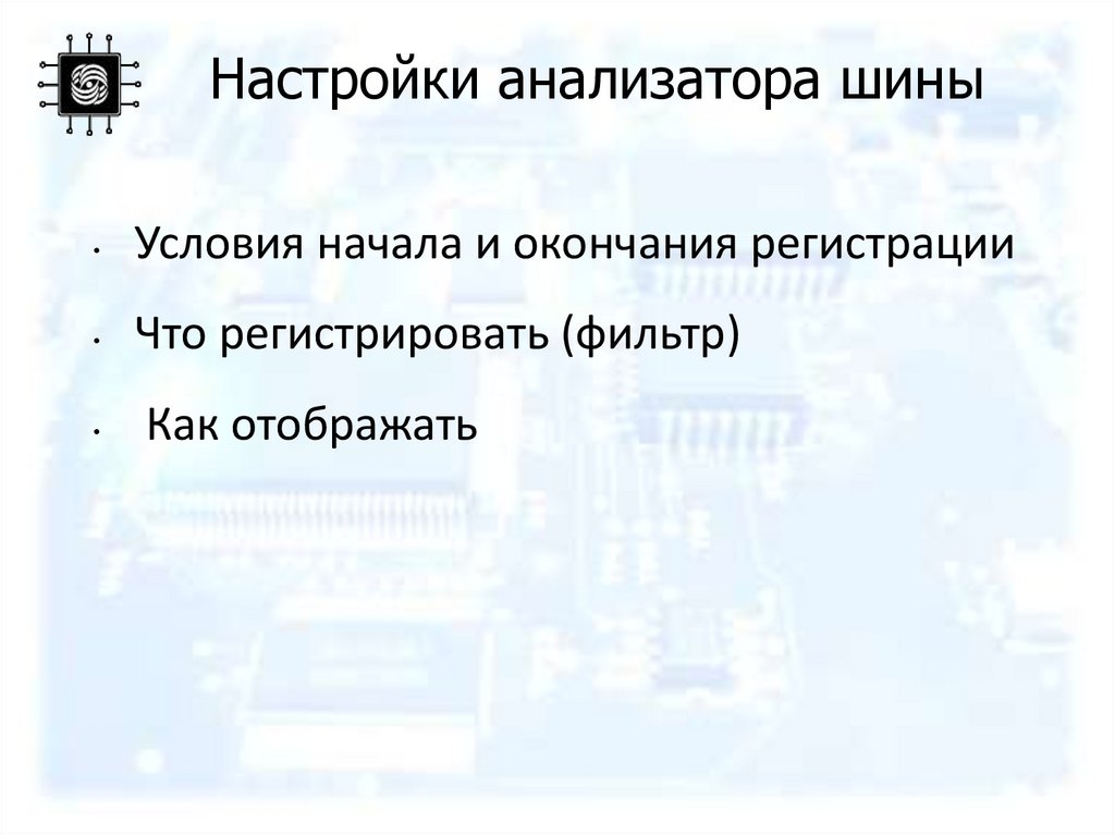 Настройки анализатора шиныУсловия начала и окончания регистрации