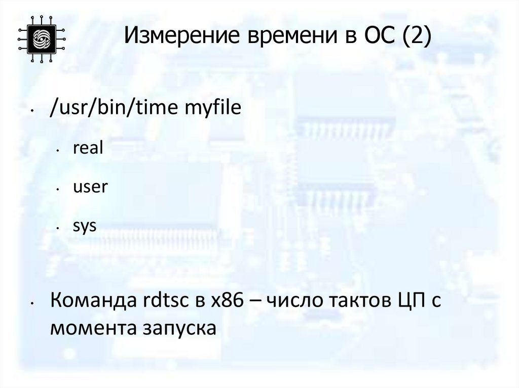 Измерение времени в ОС (2)/usr/bin/time myfile