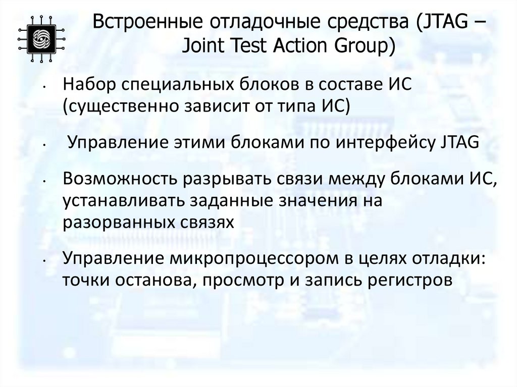 Встроенные отладочные средства (JTAG –Joint Test Action Group)