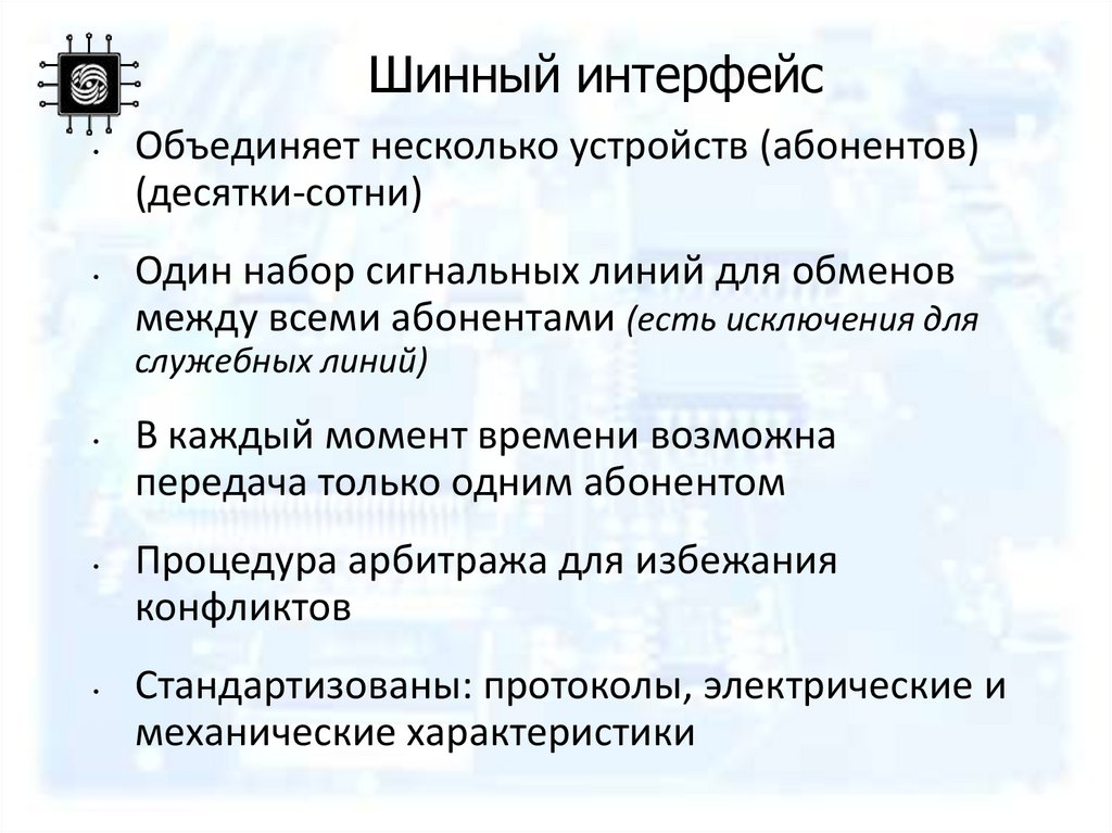 Шинный интерфейсОбъединяет несколько устройств (абонентов)