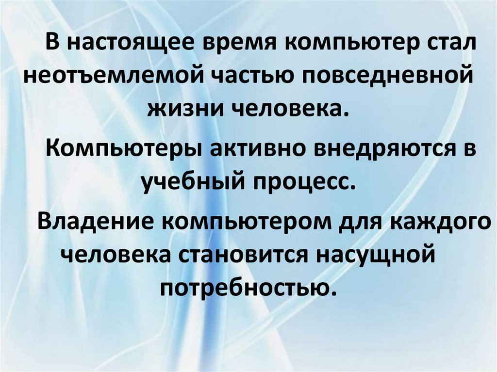 В настоящее время компьютер сталнеотъемлемой частью повседневной