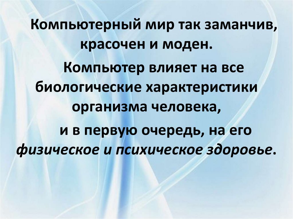 Негативное воздействие компьютера на здоровье человека испособы защиты.