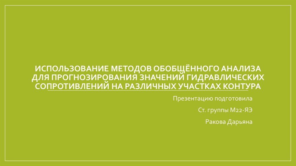 ИСПОЛЬЗОВАНИЕ МЕТОДОВ ОБОБЩЁННОГО АНАЛИЗАДЛЯ ПРОГНОЗИРОВАНИЯ ЗНАЧЕНИЙ ГИДРАВЛИЧЕСКИХ