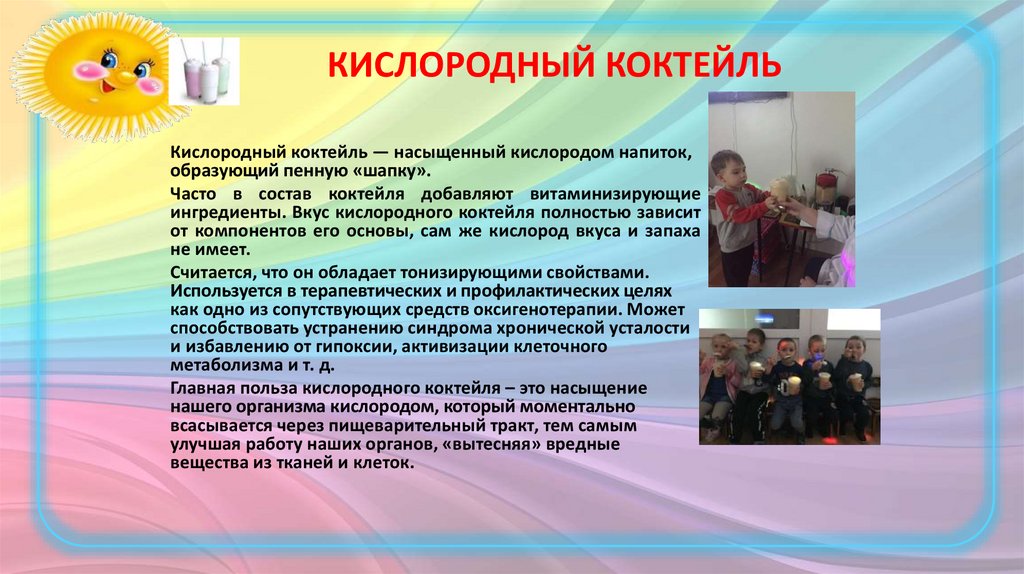 КИСЛОРОДНЫЙ КОКТЕЙЛЬКислородный коктейль — насыщенный кислородом напиток,