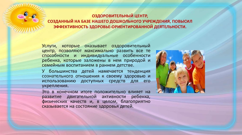 ОЗДОРОВИТЕЛЬНЫЙ ЦЕНТР,СОЗДАННЫЙ НА БАЗЕ НАШЕГО ДОШКОЛЬНОГО УЧРЕЖДЕНИЯ, ПОВЫСИЛ