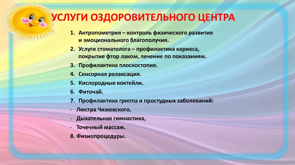 Услуги, которые оказывает оздоровительный