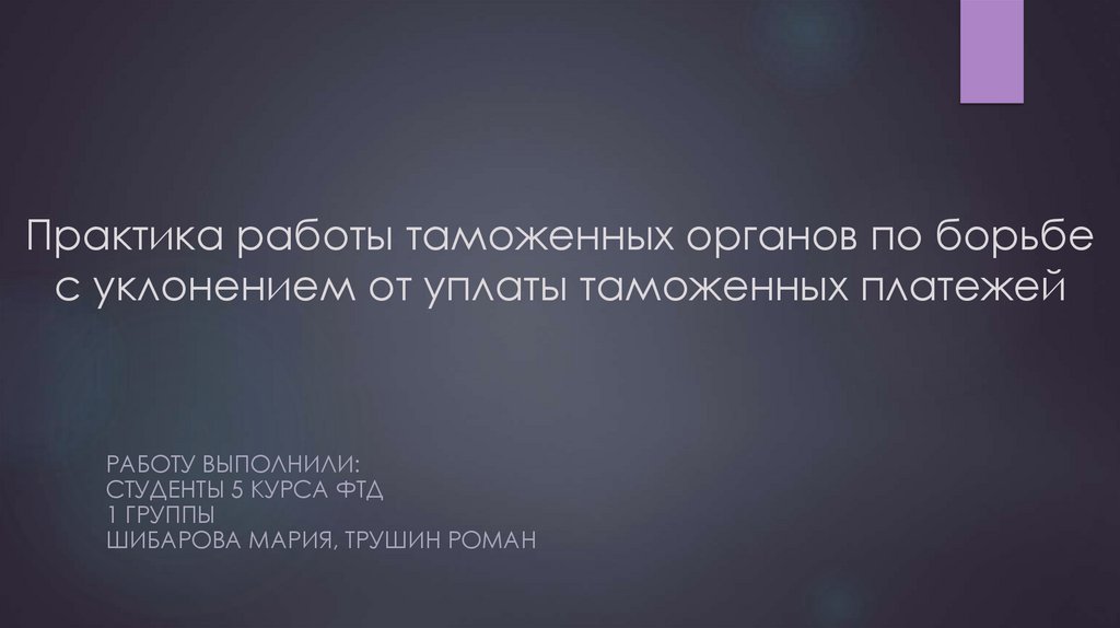 Практика работы таможенных органов по борьбес уклонением от уплаты таможенных платежей