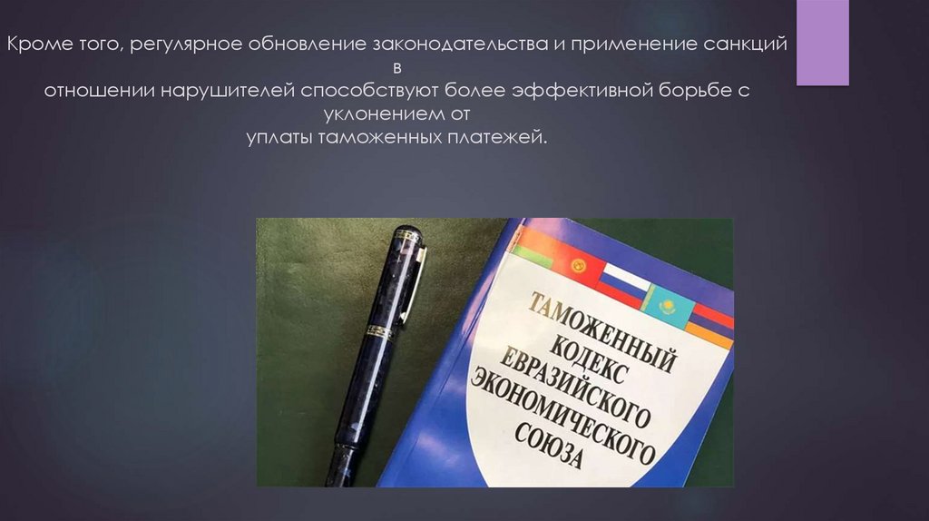 Кроме того, регулярное обновление законодательства и применение санкцийв