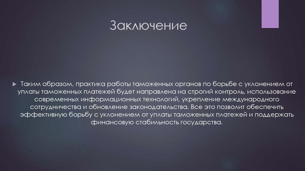 ЗаключениеТаким образом, практика работы таможенных органов по борьбе с уклонением от