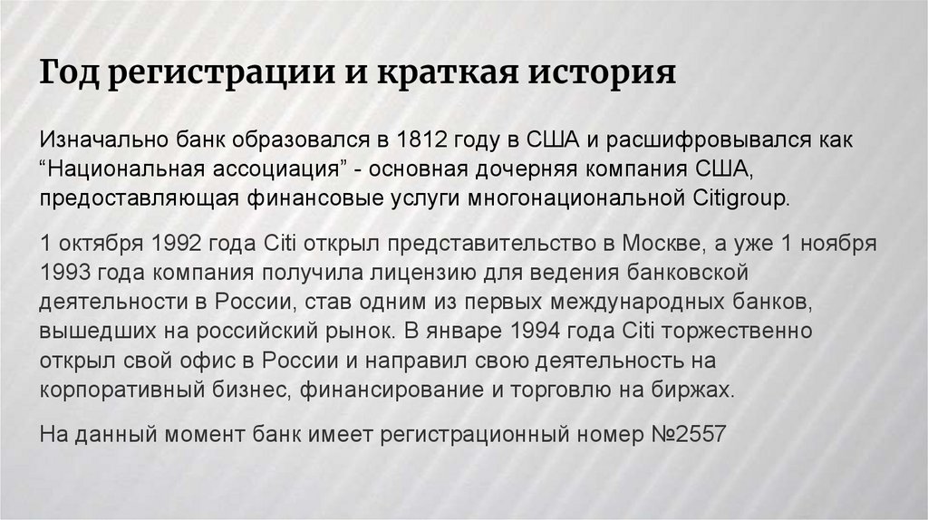 Год регистрации и краткая историяИзначально банк образовался в 1812 году в США и расшифровывался как