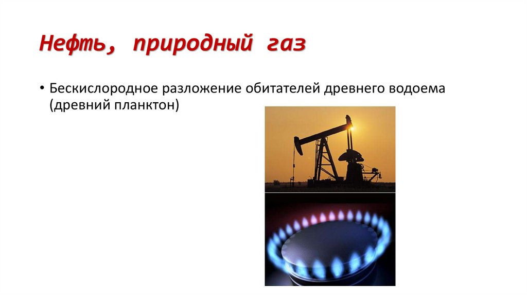 Нефть, природный газ• Бескислородное разложение обитателей древнего водоема