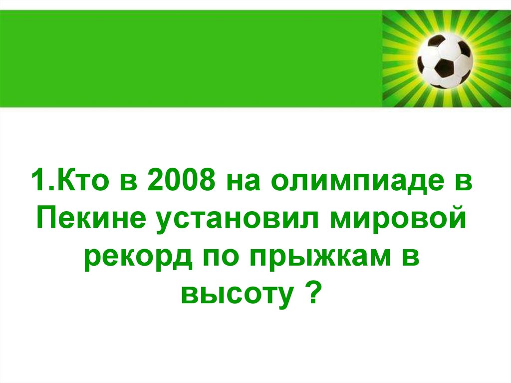 1.Кто в 2008 на олимпиаде вПекине установил мировой