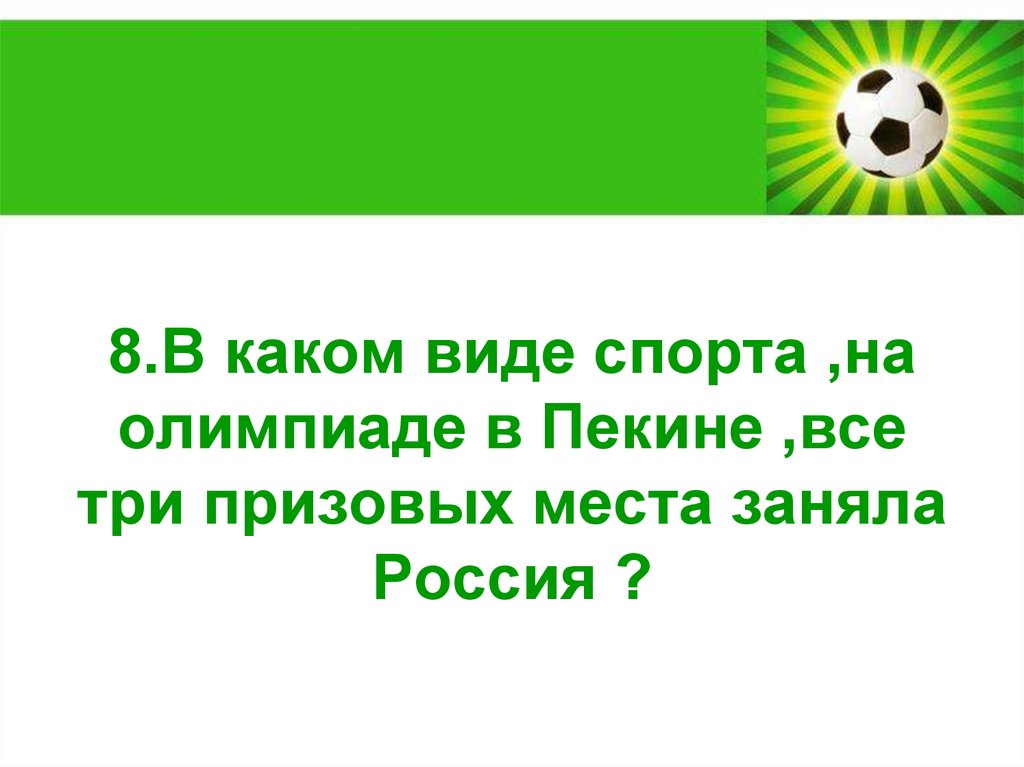 8.В каком виде спорта ,наолимпиаде в Пекине ,все