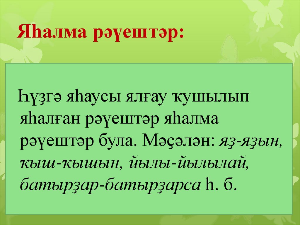 рәүештәр була. Мәҫәлән: яҙ-яҙын,