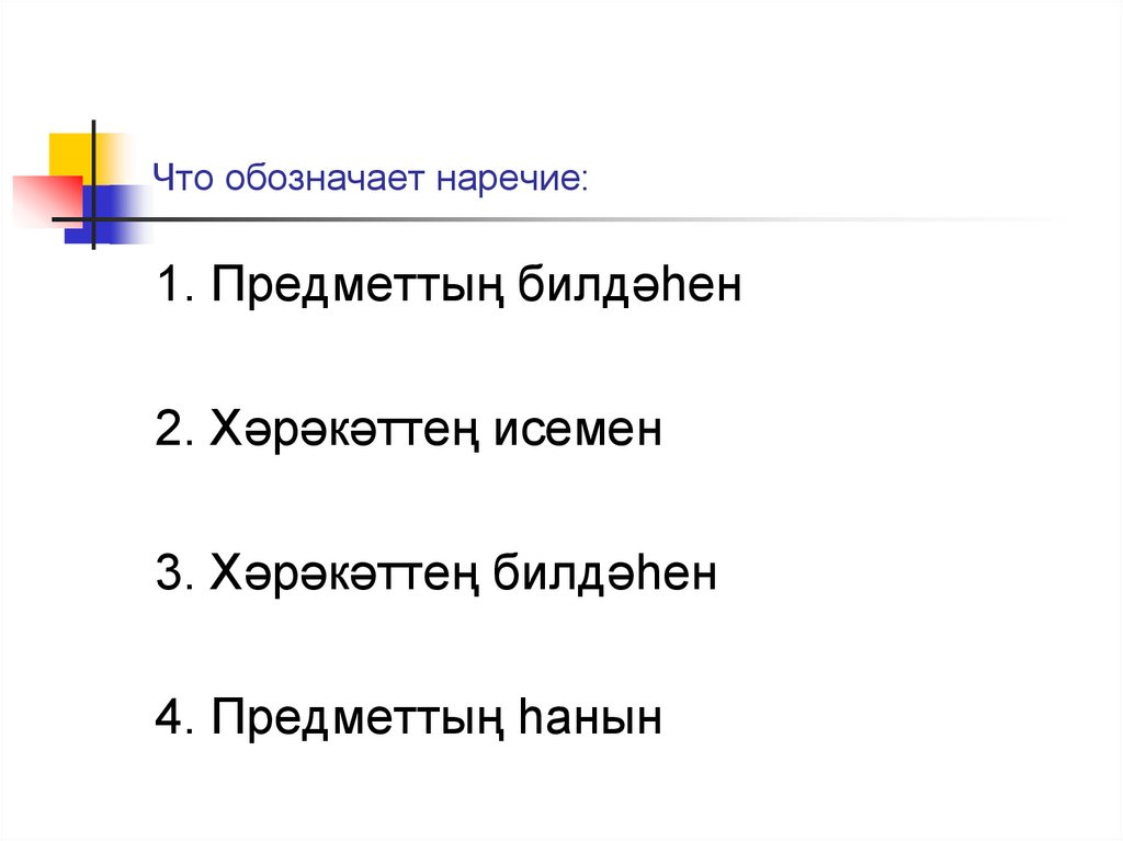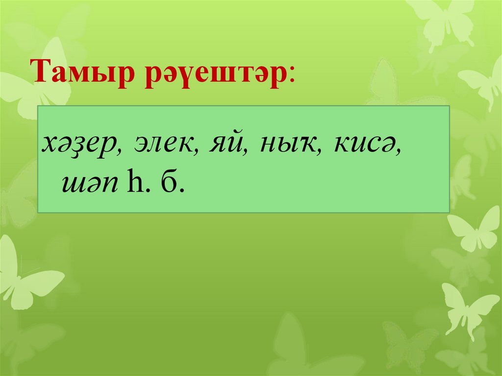 Тамыр рәүештәр:хәҙер, элек, яй, ныҡ, кисә,
