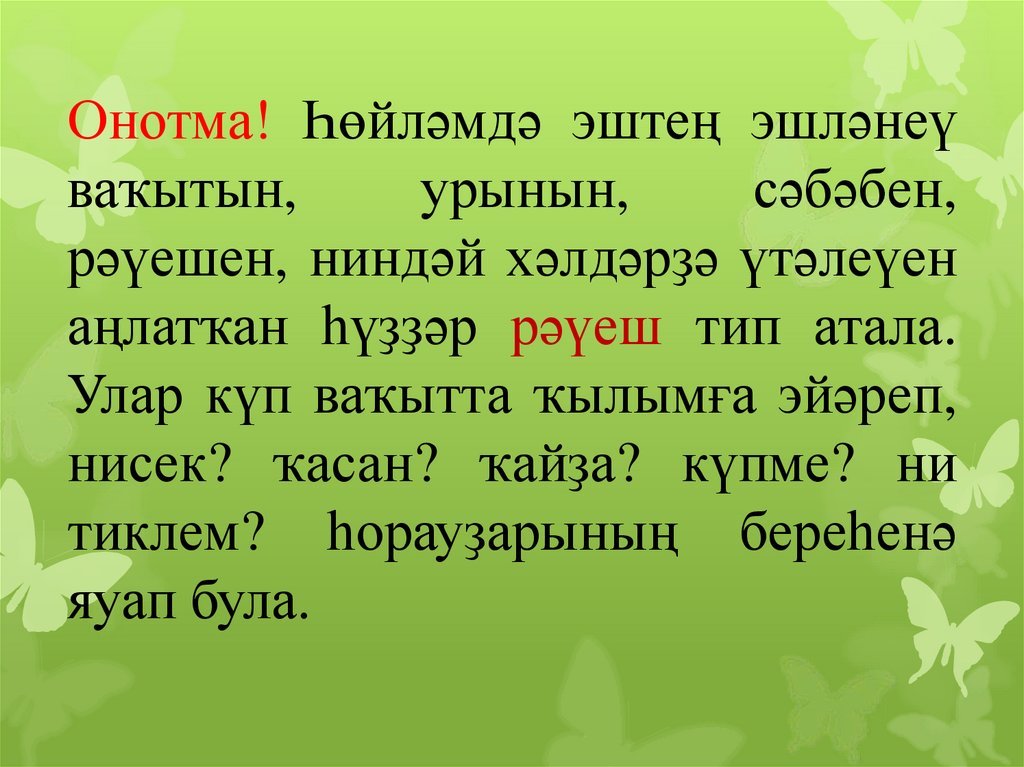 Онотма! Һөйләмдә эштең эшләнеүваҡытын,