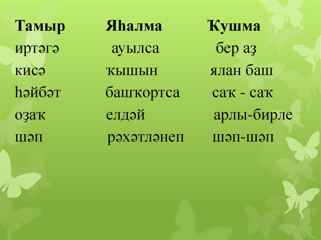 Ҡарға нисек ҡарҡылдай. (ҡар-ҡар-ҡар)