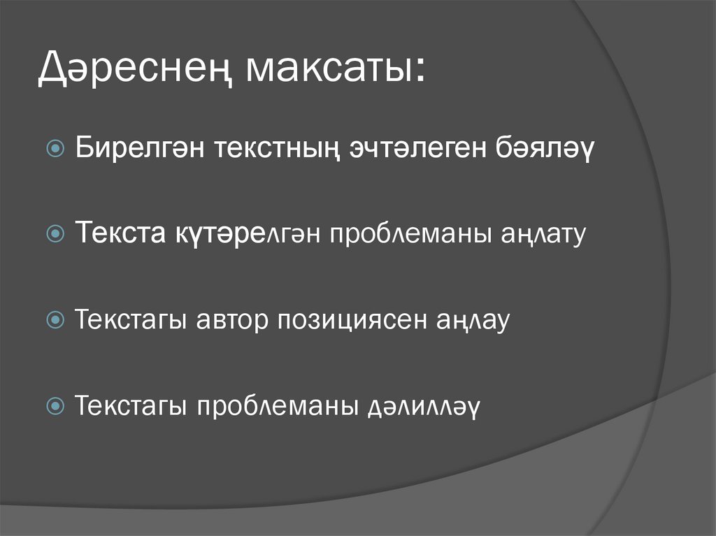 Дәреснең максаты:Бирелгән текстның эчтәлеген бәяләү
