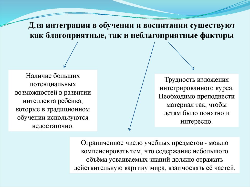 Для интеграции в обучении и воспитании существуюткак благоприятные, так и неблагоприятные факторы