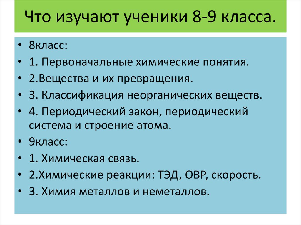 Что изучают ученики 8-9 класса.8класс:
