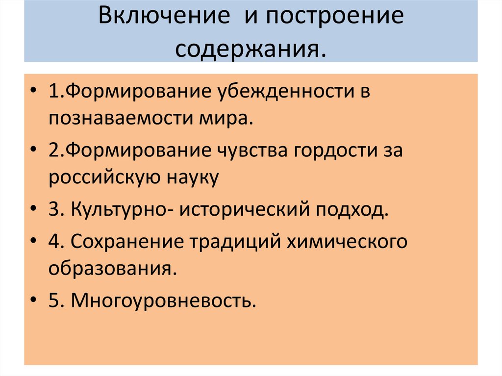 Включение и построениесодержания.