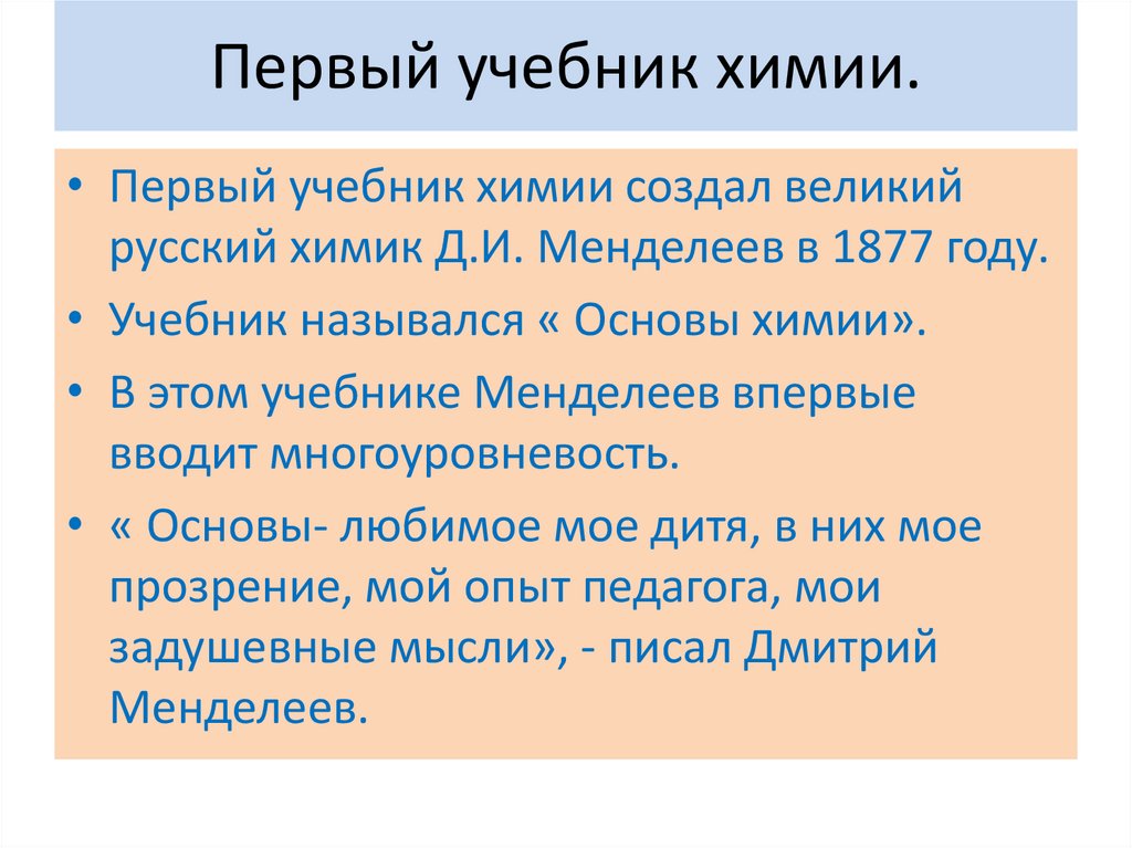 • Учебник назывался « Основы химии».