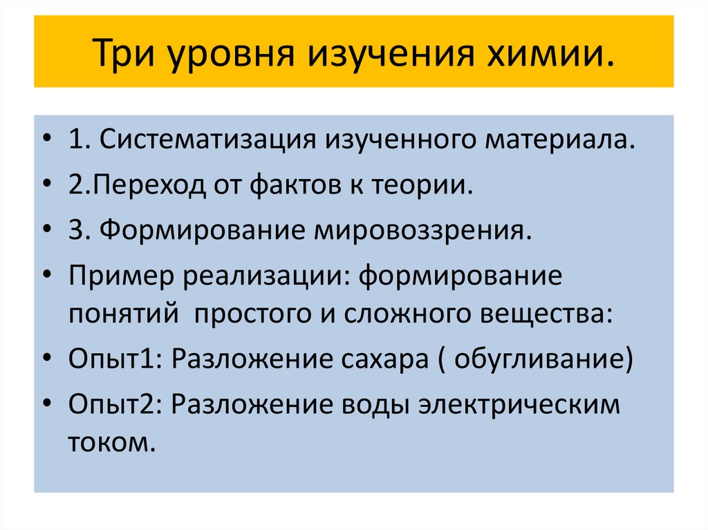 Три уровня изучения химии.1. Систематизация изученного материала.