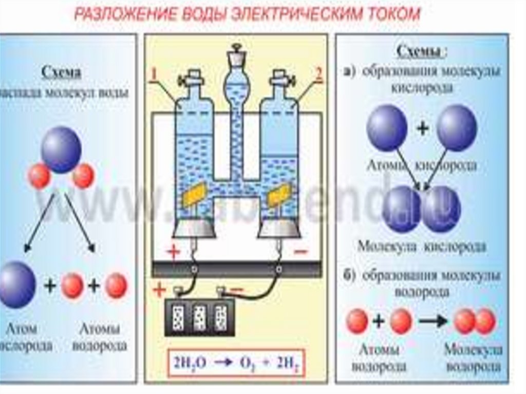 • Опыт2: Разложение воды электрическим