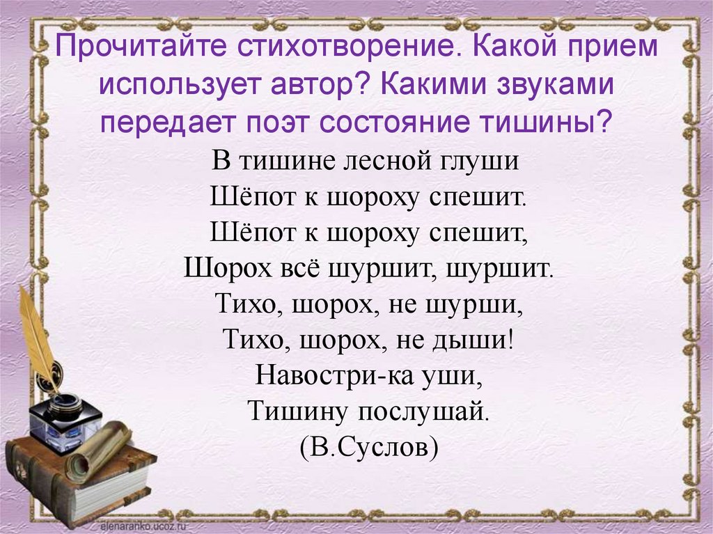 Прочитайте стихотворение. Какой приемиспользует автор? Какими звуками