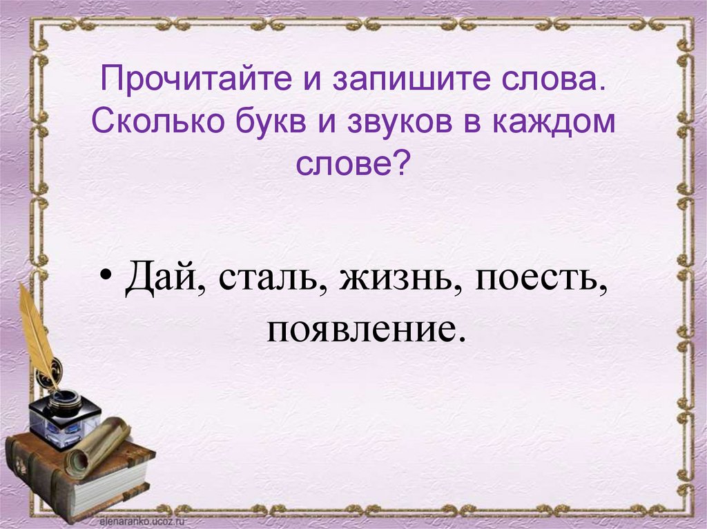 Прочитайте и запишите слова.Сколько букв и звуков в каждом