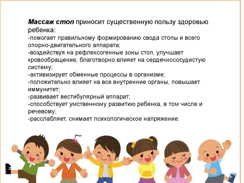 Массаж стоп приносит существенную пользу здоровьюребенка:
