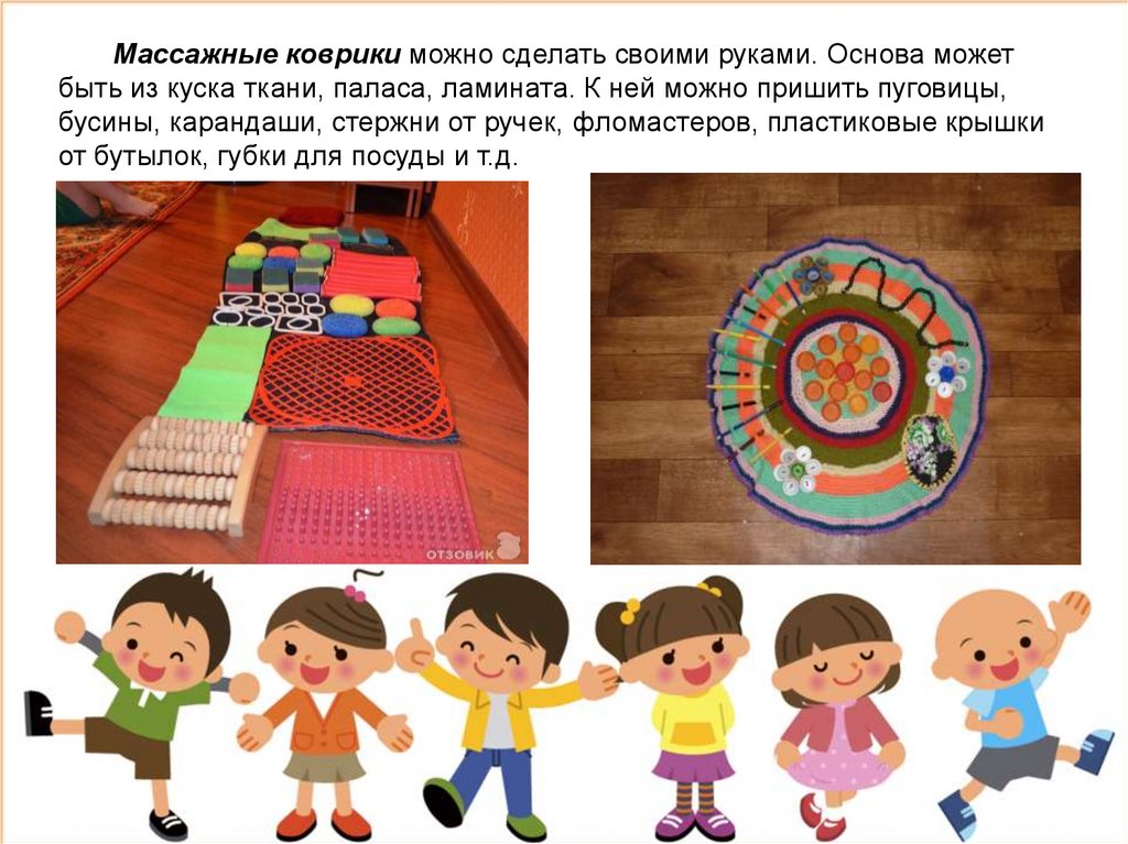 Массажные коврики можно сделать своими руками. Основа можетбыть из куска ткани, паласа, ламината. К ней можно пришить пуговицы,