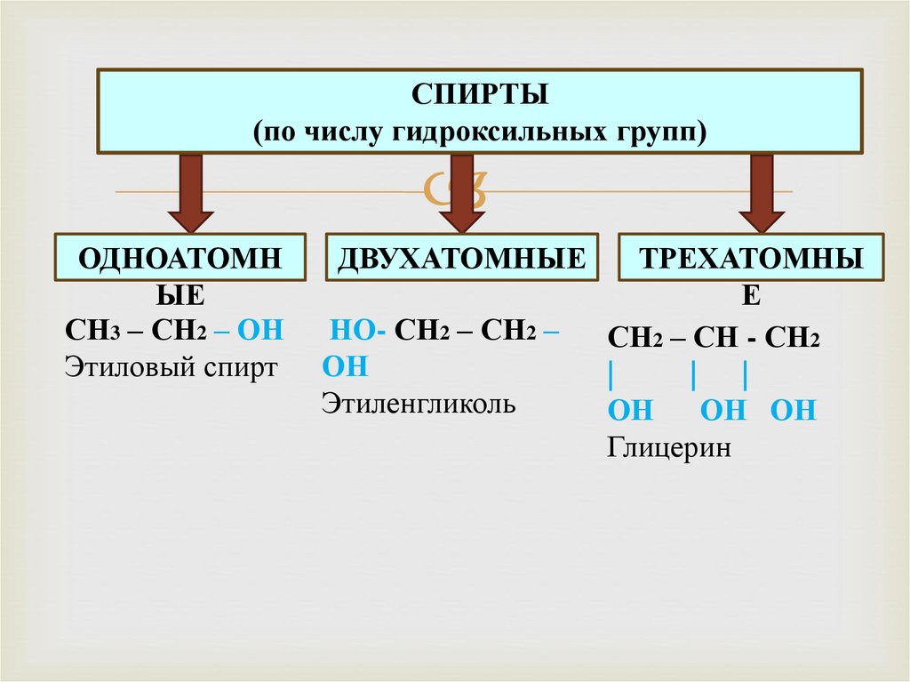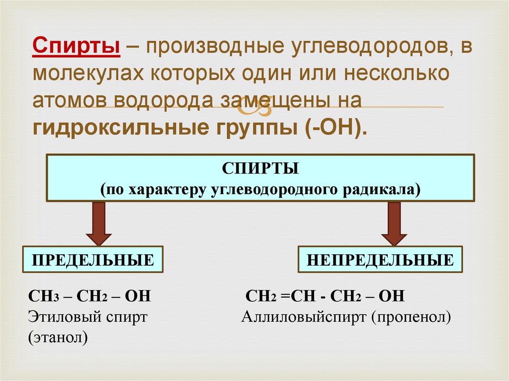 Спирты – производные углеводородов, вмолекулах которых один или несколько