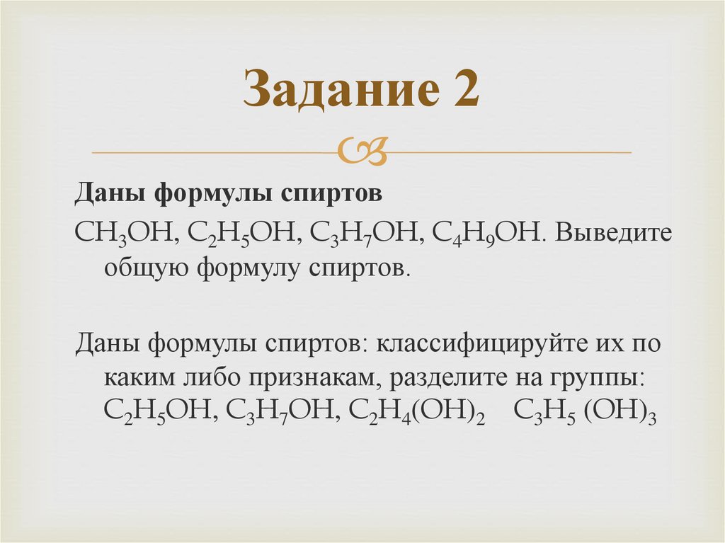 CH3OH, C2H5OH, C3H7OH, C4H9OH. Выведите