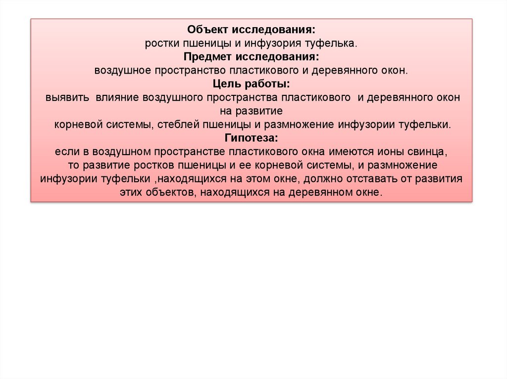 Объект исследования:ростки пшеницы и инфузория туфелька.