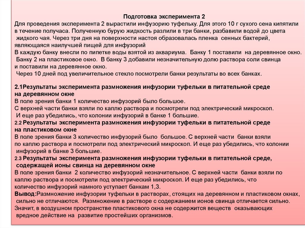 Вывод:Размножение инфузории туфельки в растворах, стоящих на деревянном и пластиковом окнах,