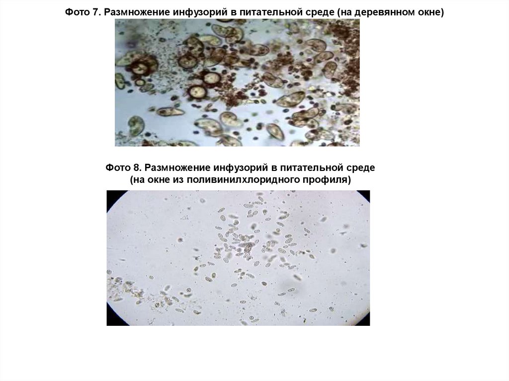 Фото 7. Размножение инфузорий в питательной среде (на деревянном окне)Фото 8. Размножение инфузорий в питательной среде