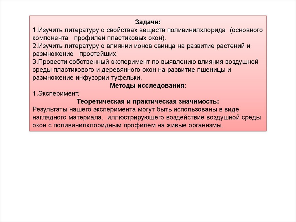 Задачи:1.Изучить литературу о свойствах веществ поливинилхлорида (основного