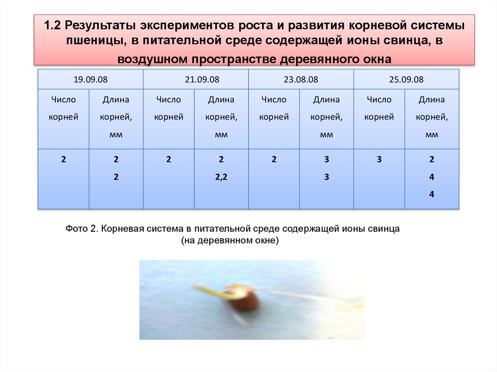1.2 Результаты экспериментов роста и развития корневой системыпшеницы, в питательной среде содержащей ионы свинца, в