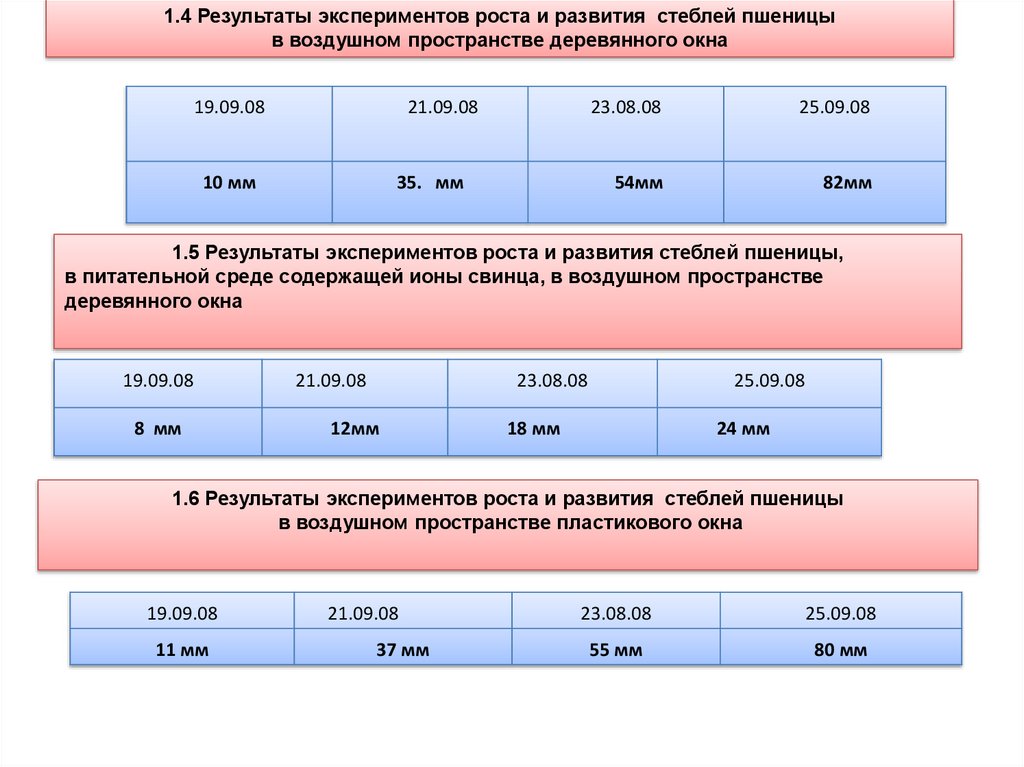 1.4 Результаты экспериментов роста и развития стеблей пшеницыв воздушном пространстве деревянного окна