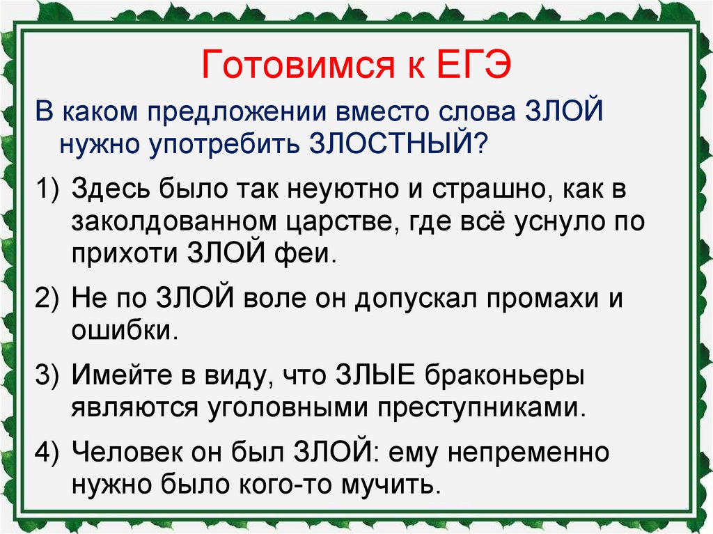 В каком предложении вместо слова ЗЛОЙнужно употребить ЗЛОСТНЫЙ?