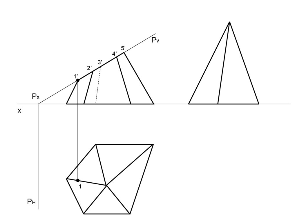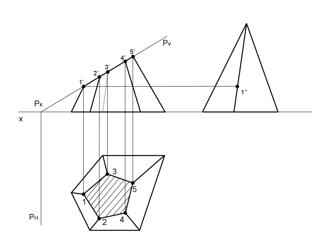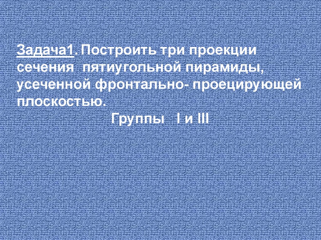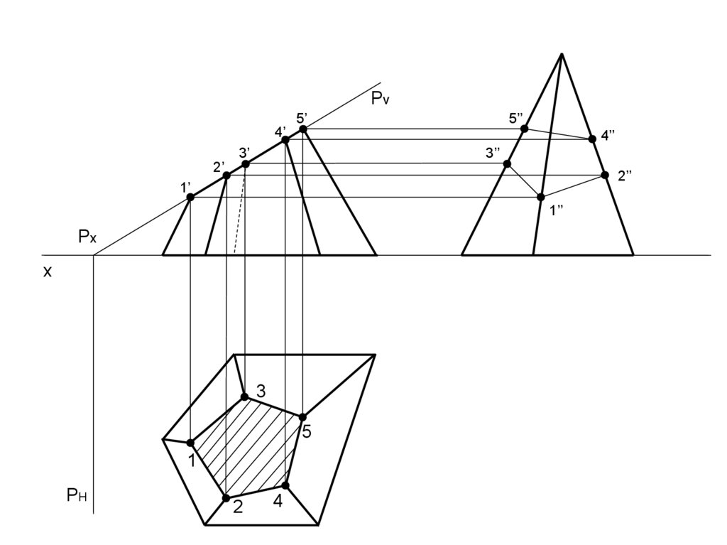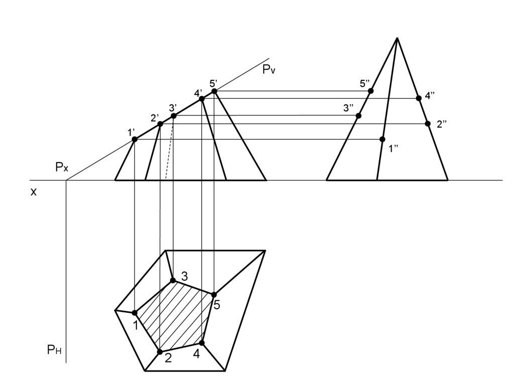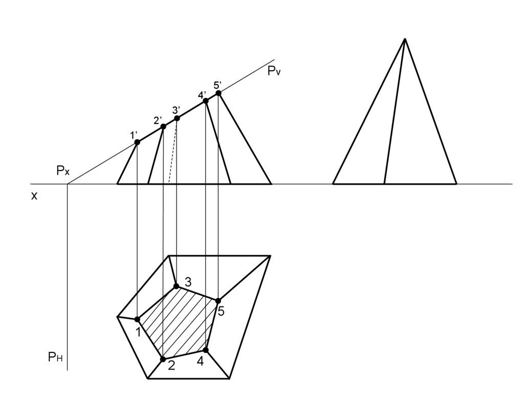 Задача1. Построить три проекциисечения пятиугольной пирамиды,