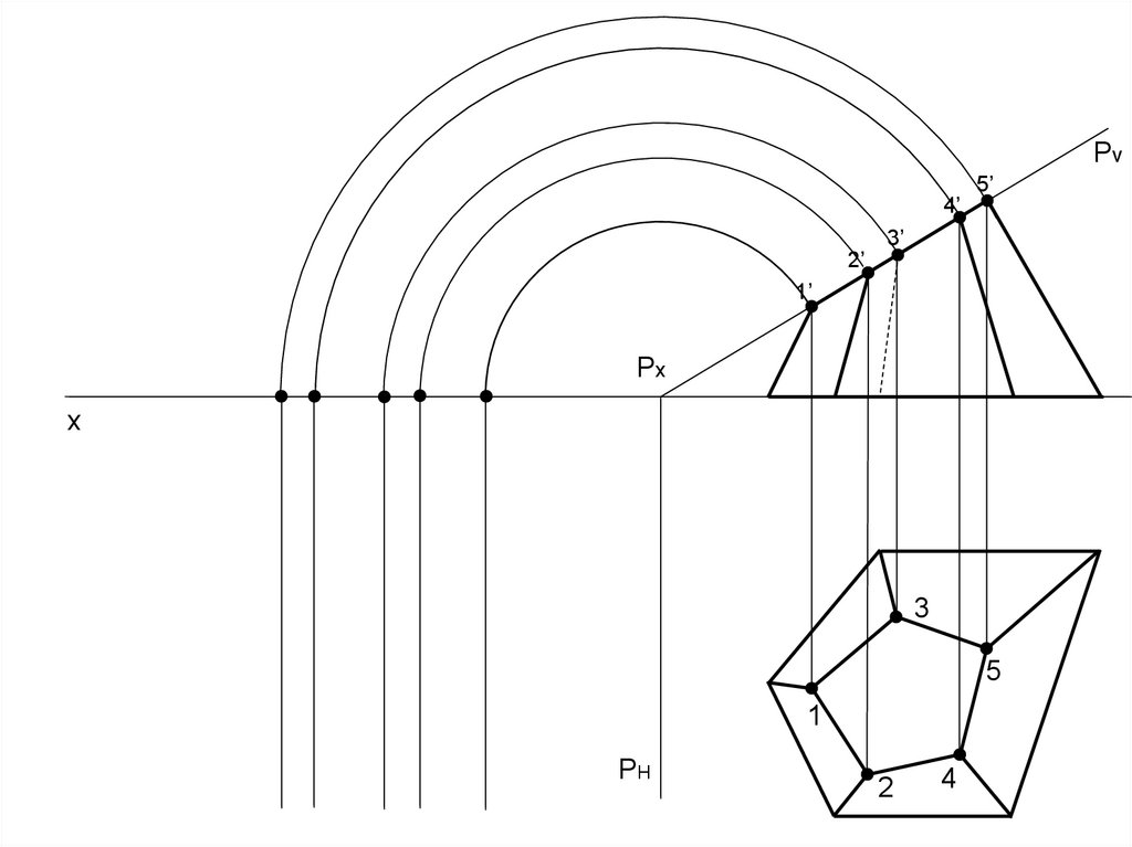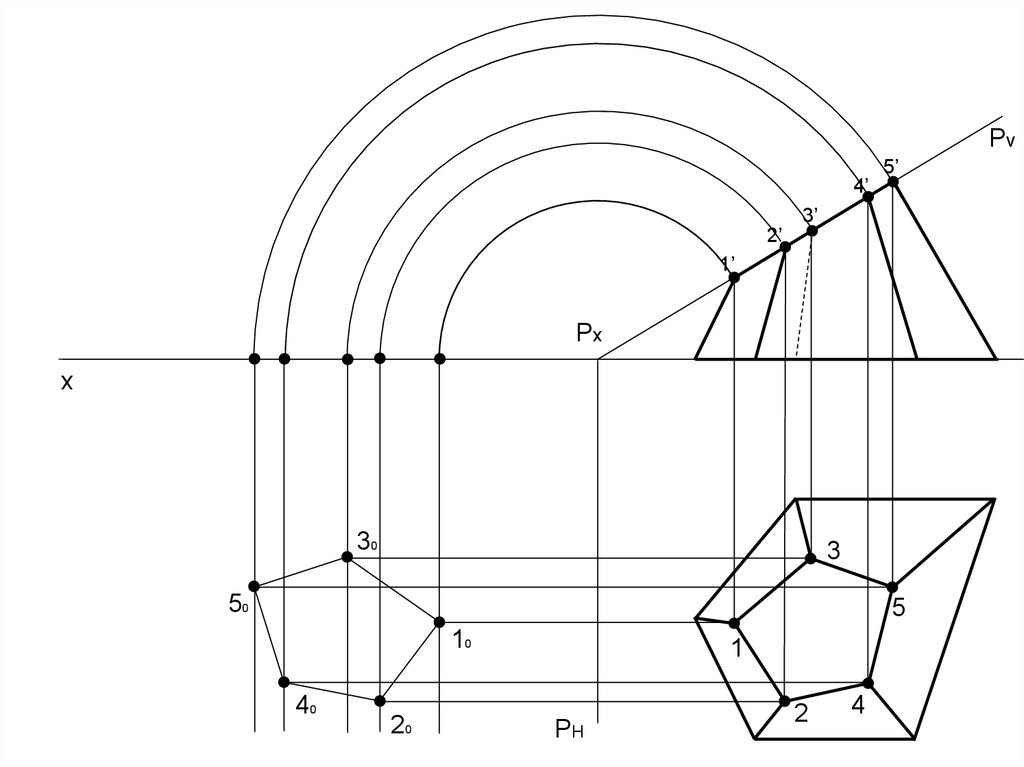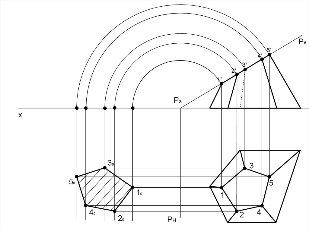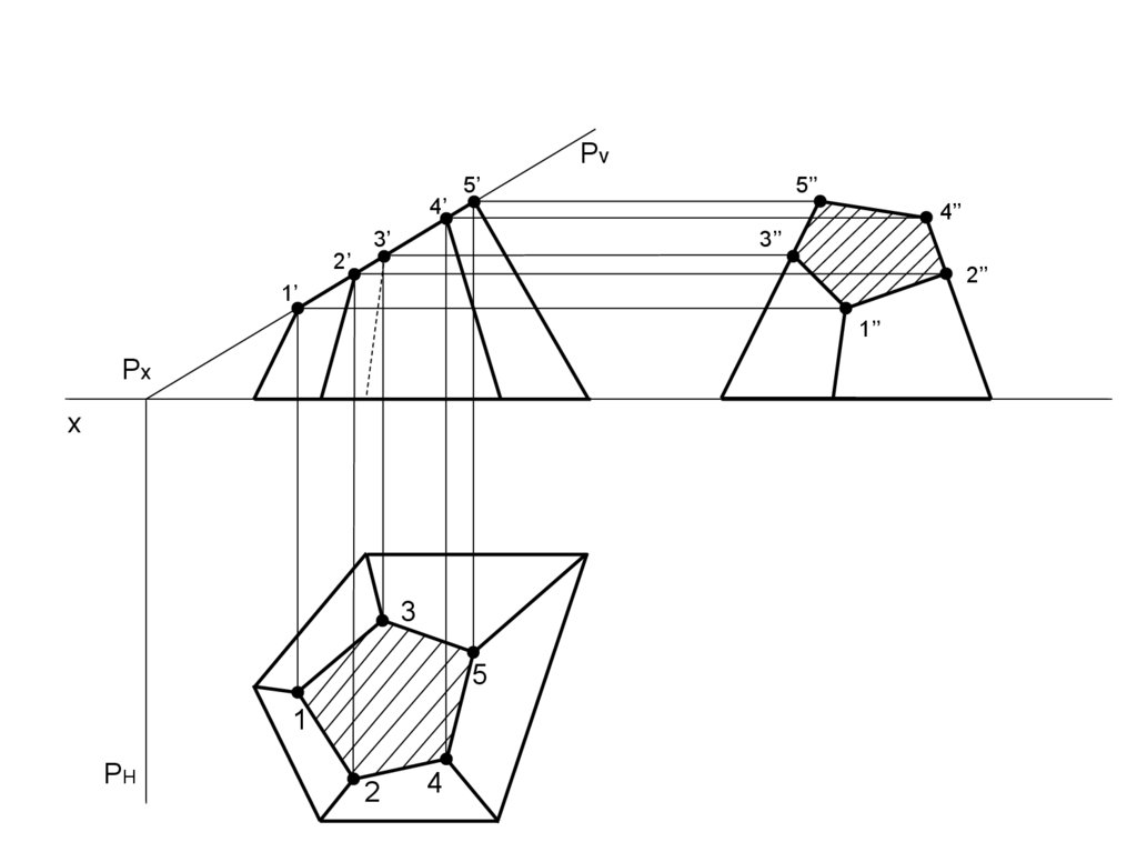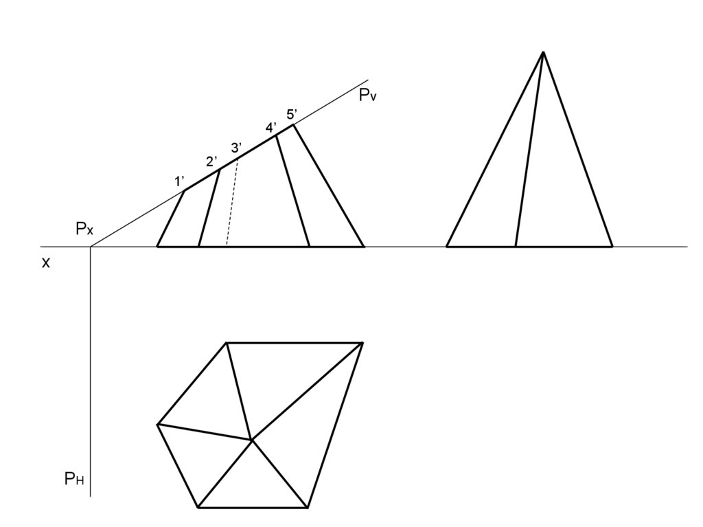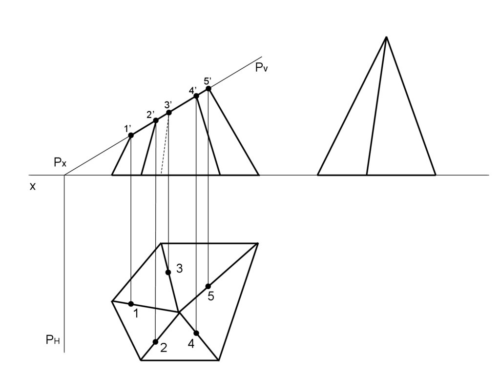 Задача1. Построить три проекциисечения пятиугольной пирамиды,