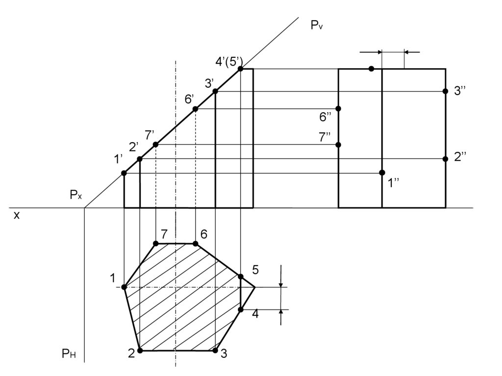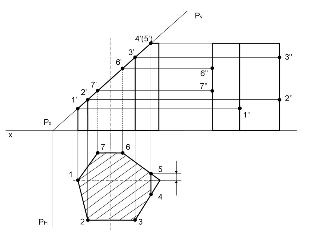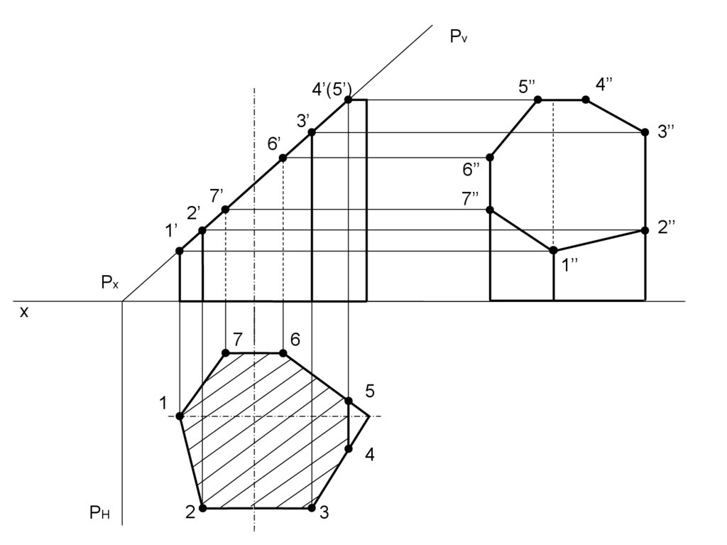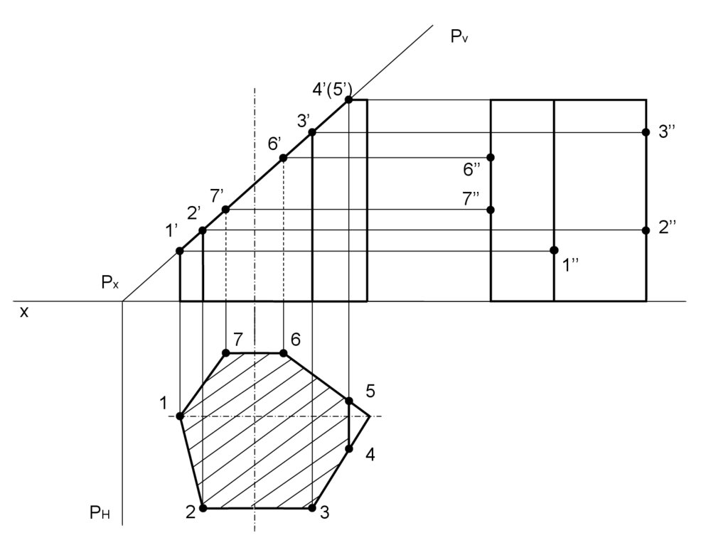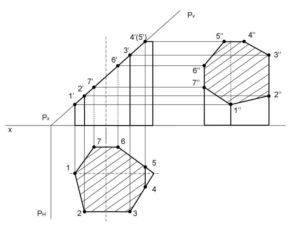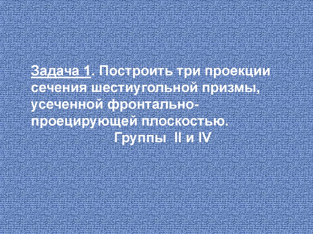 Задача 1. Построить три проекциисечения шестиугольной призмы,