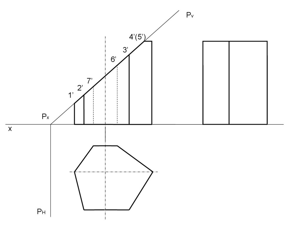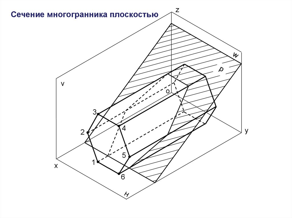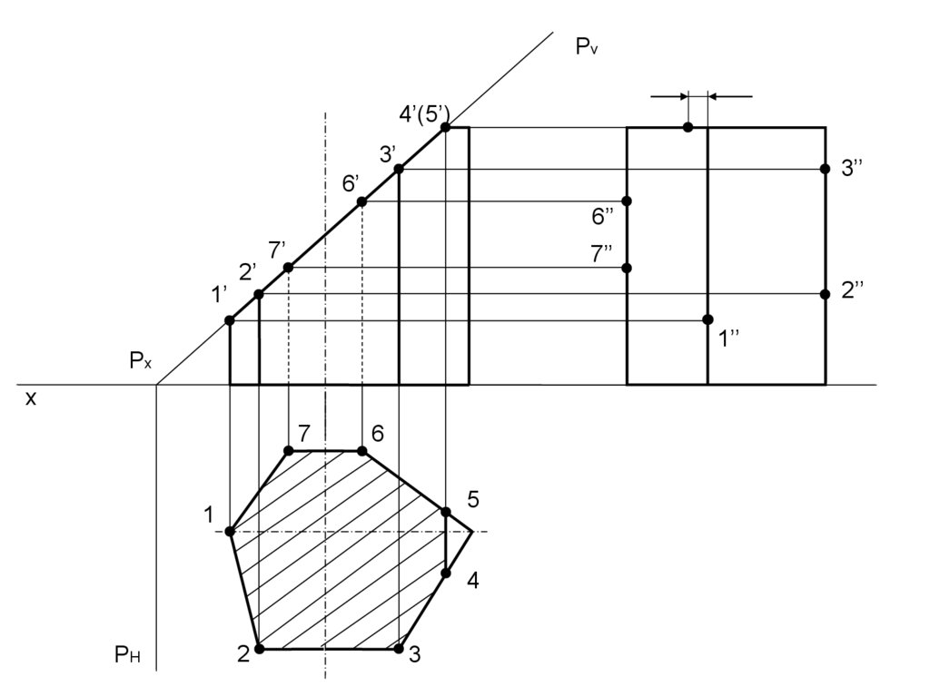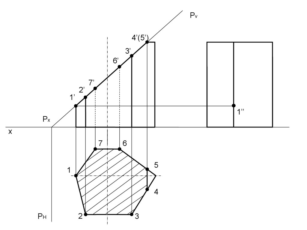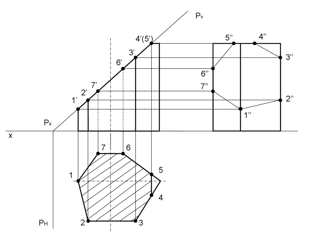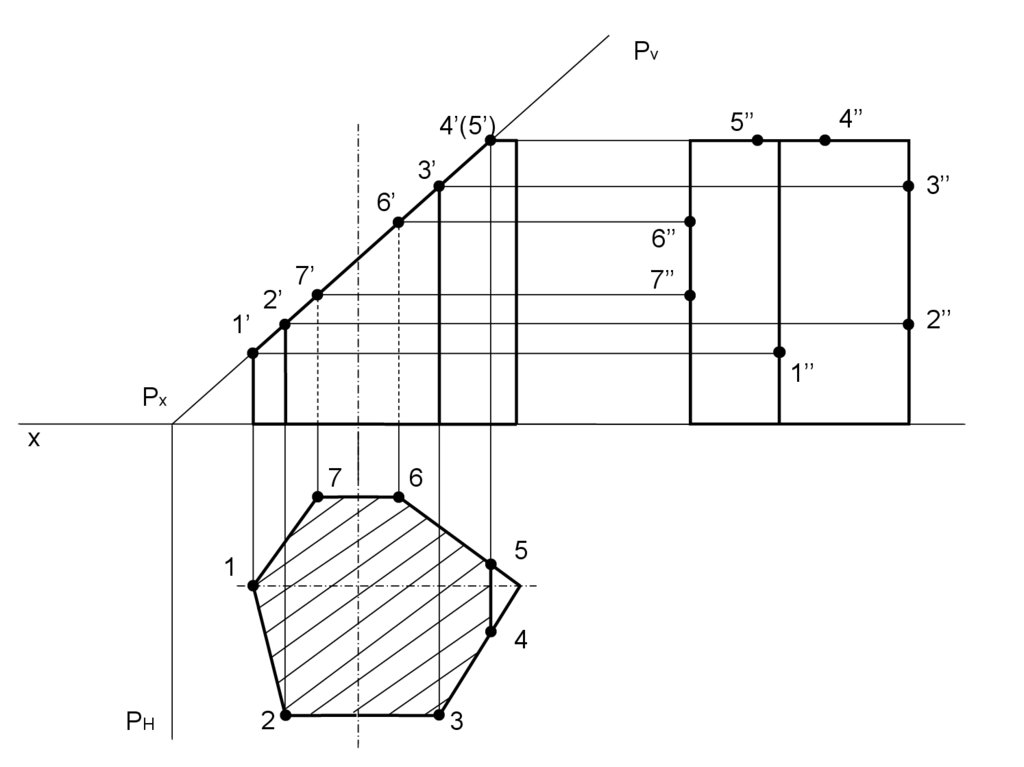 Задача 1. Построить три проекциисечения шестиугольной призмы,
