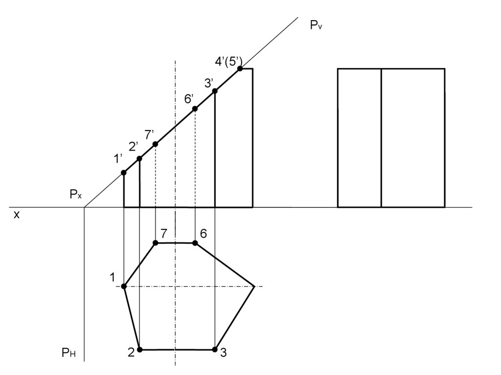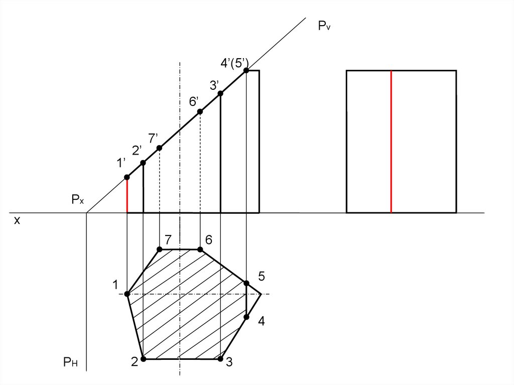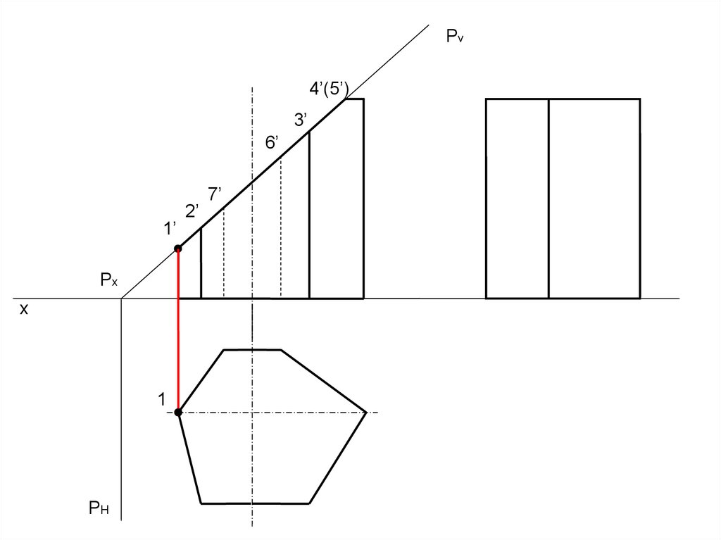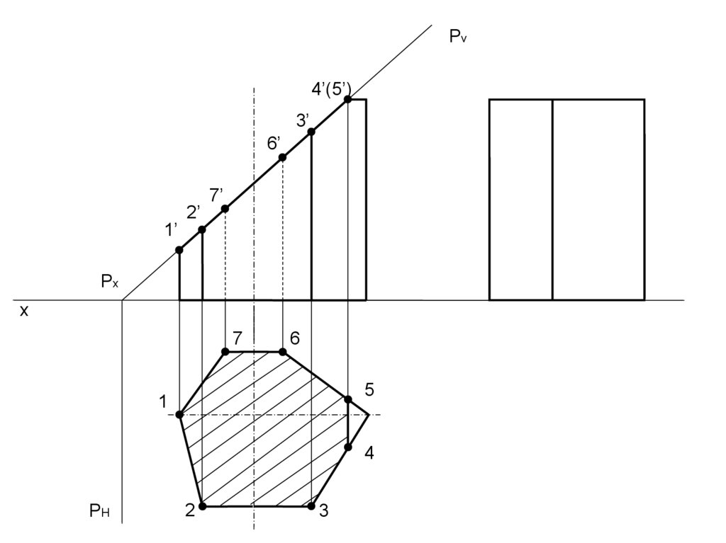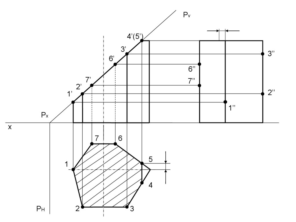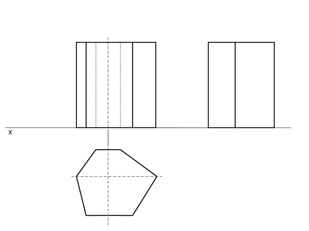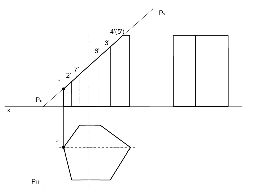 Задача 1. Построить три проекциисечения шестиугольной призмы,
