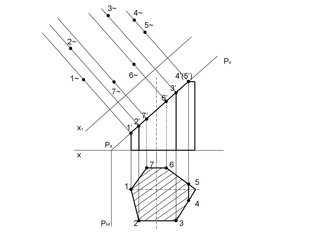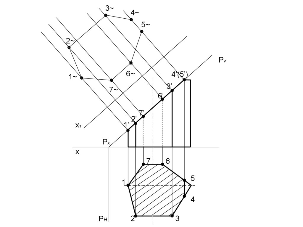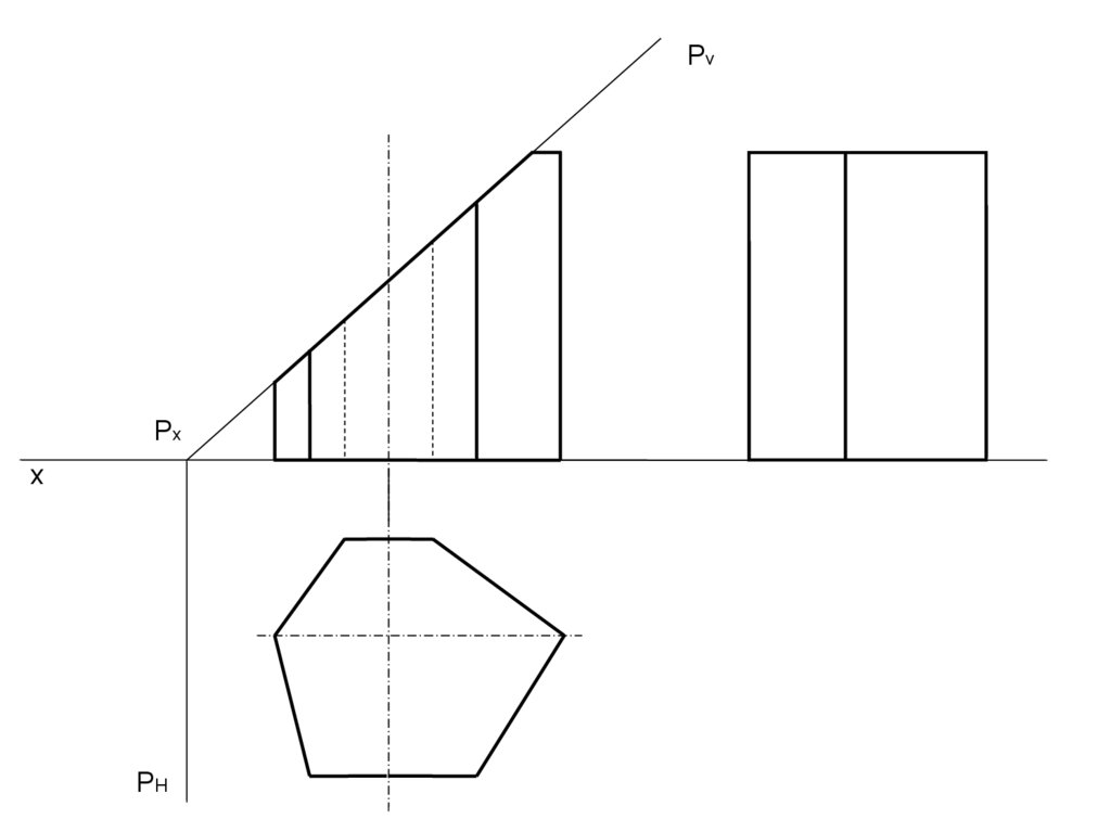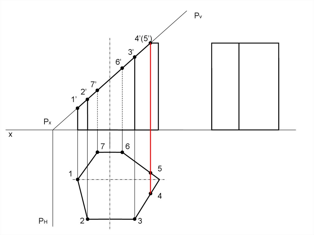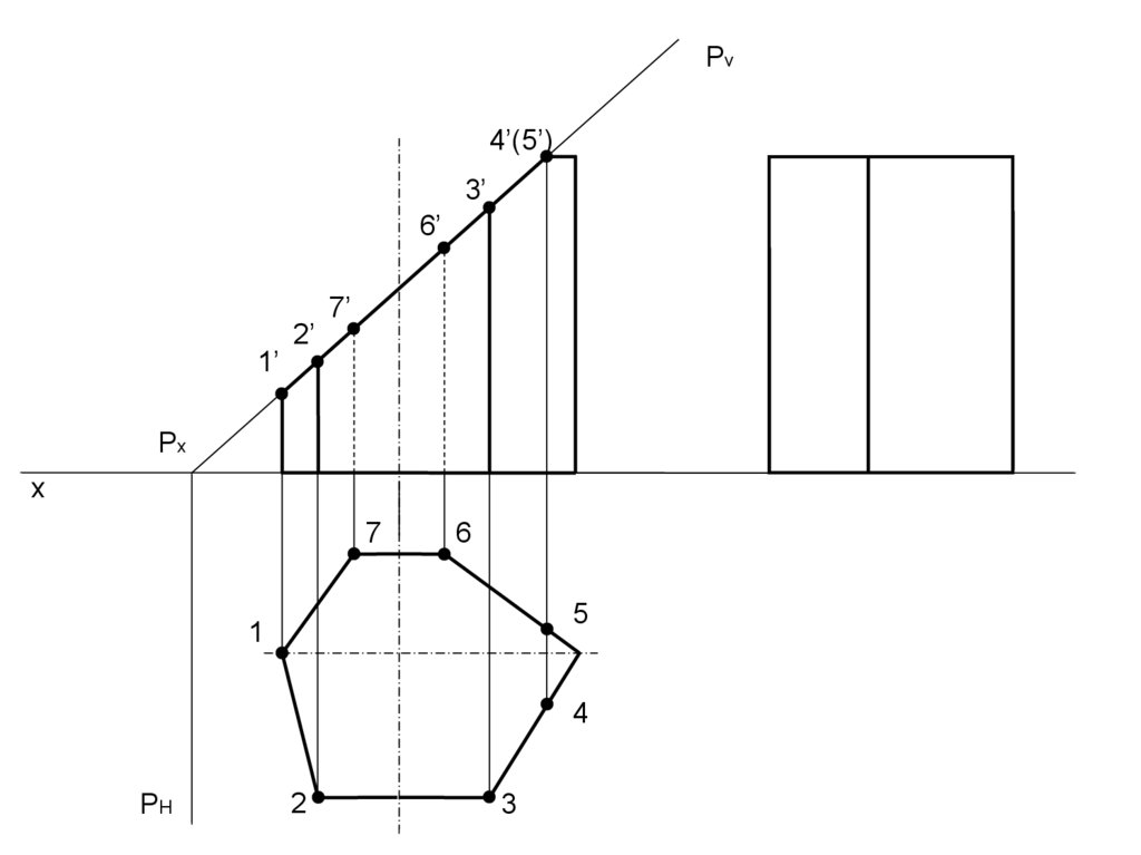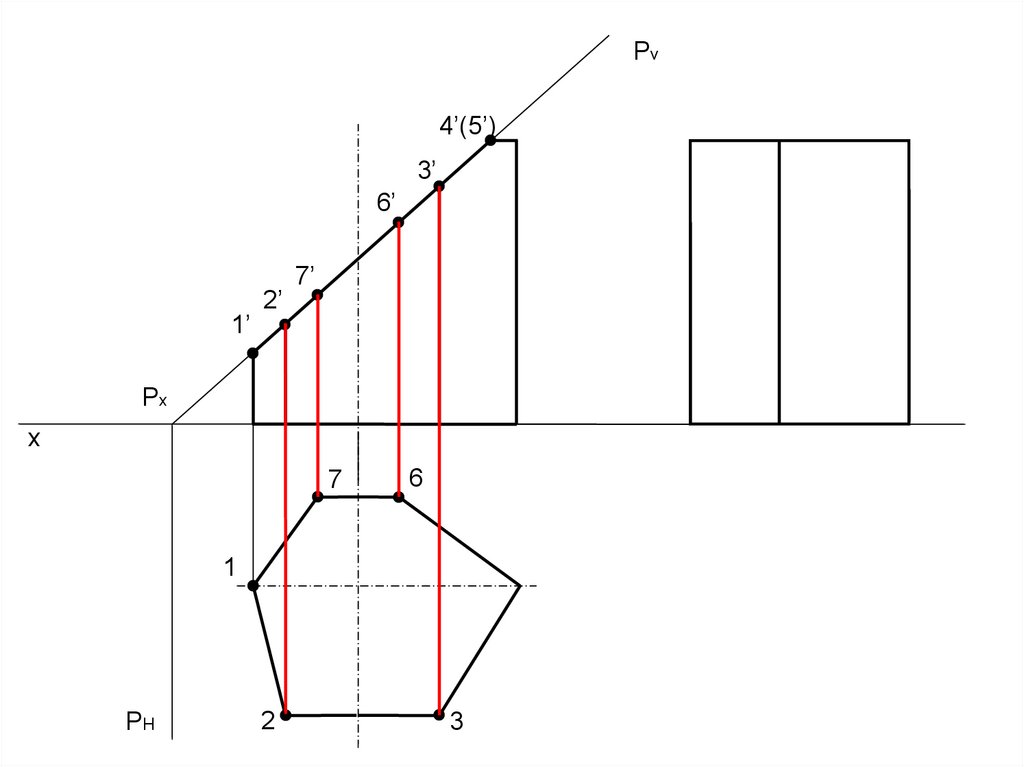 Задача 1. Построить три проекциисечения шестиугольной призмы,