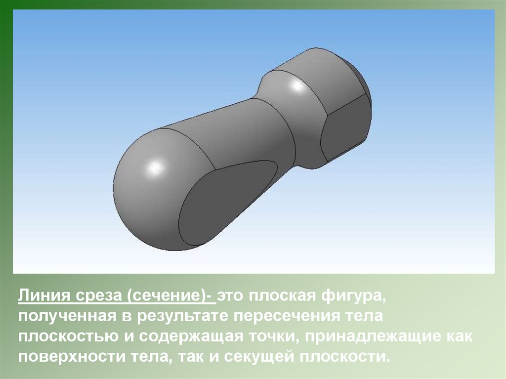 Линия среза (сечение)- это плоская фигура,полученная в результате пересечения тела
